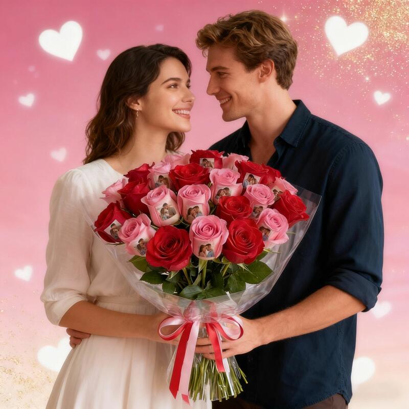 💖 Celebrate Love, Sparkle, and Joy: This anniversary, go beyond traditional gifts and embrace the extraordinary. Express your love with our photo rose bouquet, a symbol of everlasting love and joy.