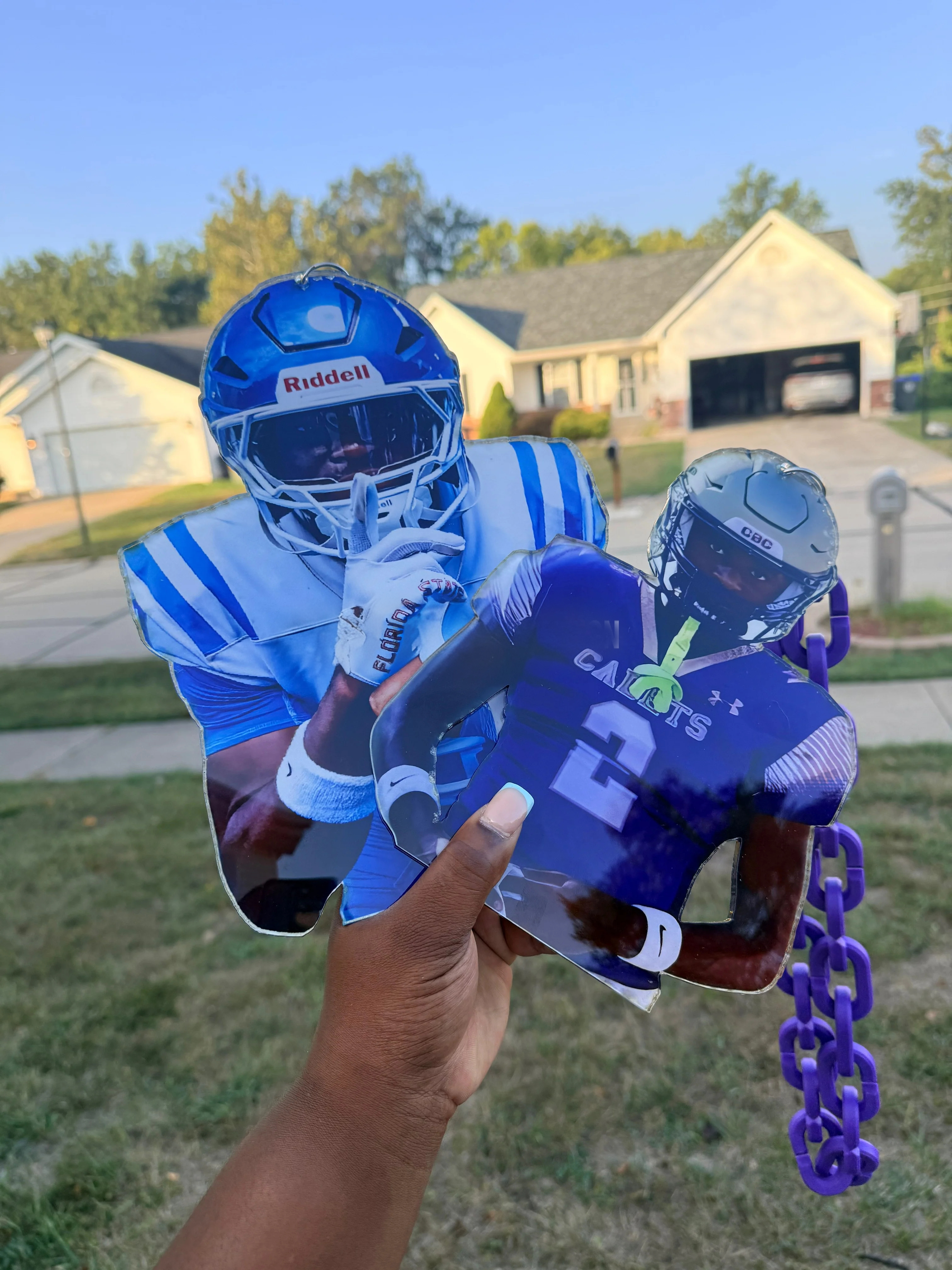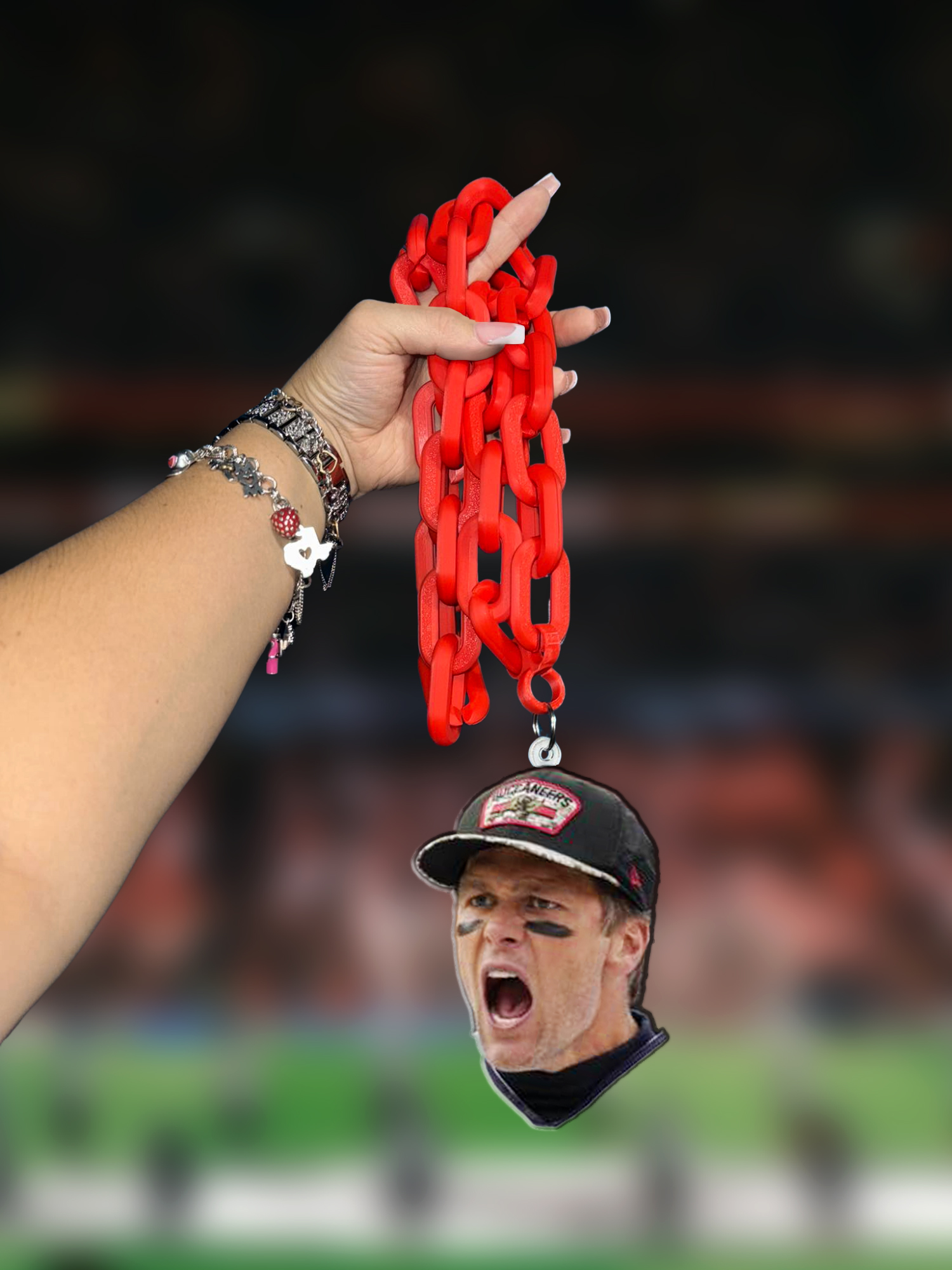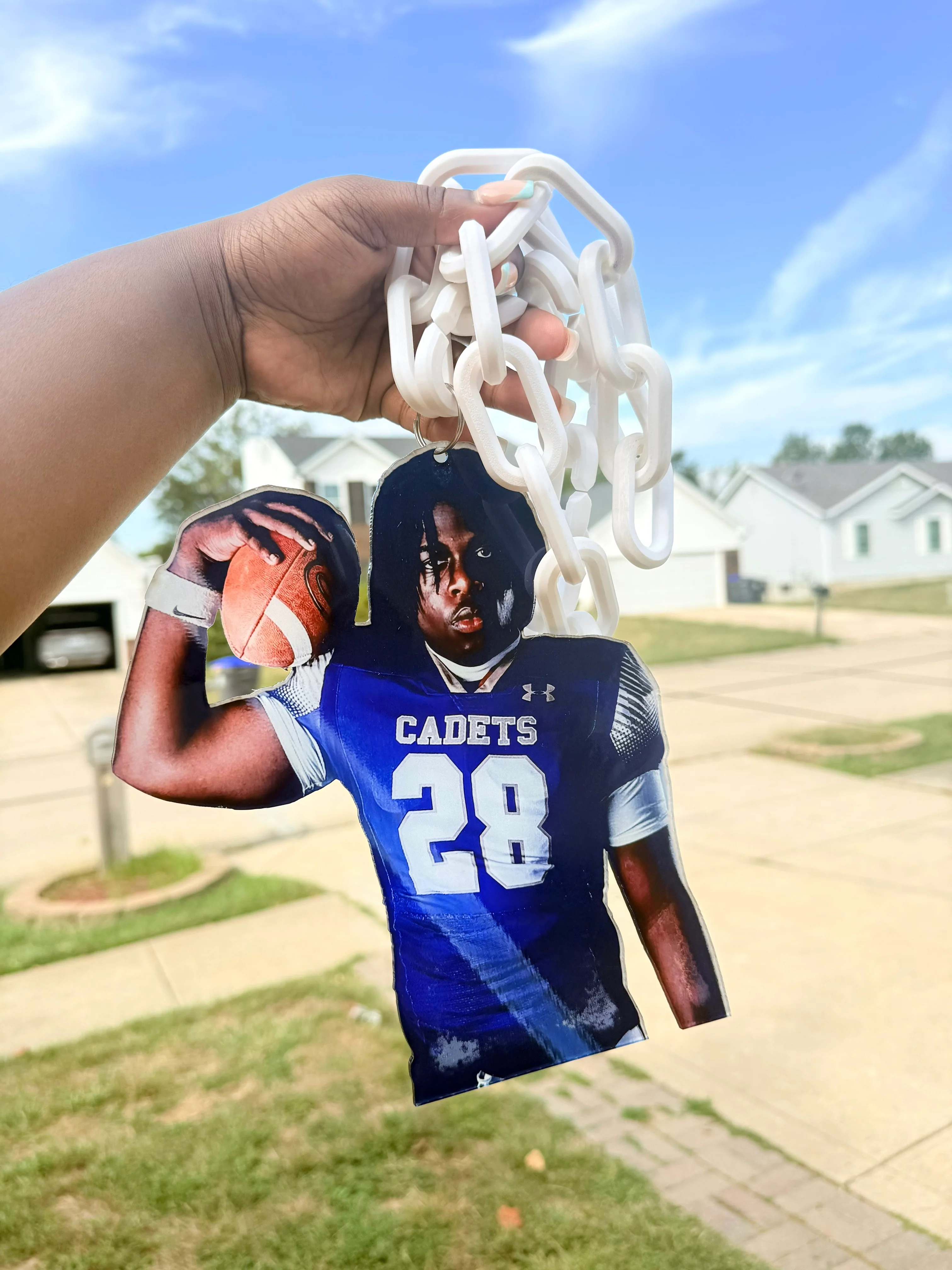 Bring the hype to the next level with this super large hip-hop style spirit chain! Add your own photo to create a bold, flashy accessory that screams team pride and captures attention wherever you go. Perfect for sports fans, cheer squads, and hype crews who want to stand out.