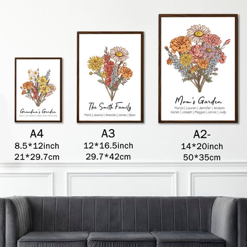Mom's Garden is Her Children, Personalized Family Birth Flower Bouquet Frame